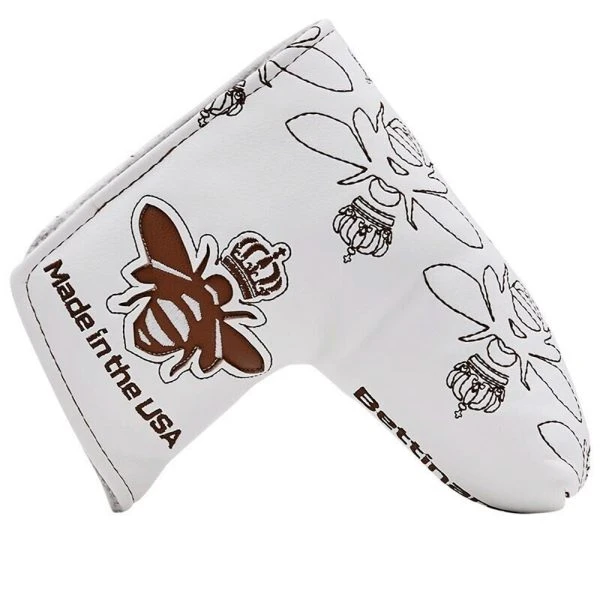 Made specifically for our 2020-21 Queen B Series line of putters, the rich off white headcover features swarming bees across the cover, a beautiful series matching Hex B in sapphire blue color scheme, and our signature Milled in the USA on the other side. Protect your Queen B putter in style!