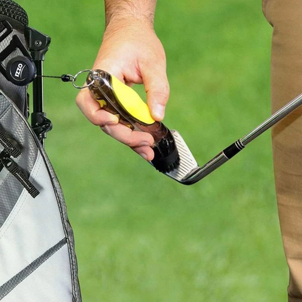 - Multipurpose brush to safely clean clubs & shoes
