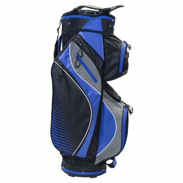 A professional quality cart bag from Longridge, the Deluxe Lite Cart Bag has an extensive range of features including a 14-way top for easy club storage, 9 pockets including pockets for telephone, clothes, accessories, drinks and balls and clothing. A rain hood is included. Ultimate comfort and club protection are assured, while maintaining style on the course. The bag is very lightweight weighing only 2.3kg.