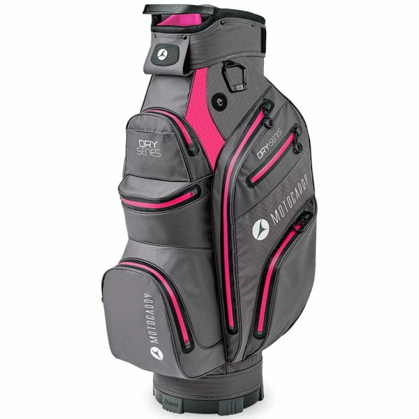 The New & Improved 2022 Motocaddy Dry-Series golf bag is constructed from lightweight waterproof materials with thermo sealed & heatwelded seams offering complete protection from the elements. This superlightweight waterproof golf bag weight in at just 2.9kg and offers 9 spacious storage pockets featuring the best zips on the market for smooth, snag free opening. The 14 way divider top and 14 individual full length club dividers offers excellent club organisation and functionality.