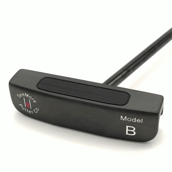 SeeMore’s new PVD Classic Series Model B brings the look of a classic heel and toe weighted blade to the FGP family, with the mid back flange weight block of the Original FGP being repositioned into enhanced heel and toe weighting. A lighter weight milled aluminium insert also enhances feel and balance. The model B is accurate and forgiving. The model B putter is face balanced at impact or “balanced to plane”, meaning it’s dynamically balanced throughout the stroke and naturally returns to square at impact, with less manipulation required during the stroke to keep the putter face on the correct path. Alignment benefits of RifleScope Technology (RST). Straight shaft. Full toe hang. Design and functionality are completely unique to SeeMore, with design making it very easy to properly release the putter head. Cast 303 stainless steel featuring milled aluminium face. New hand polished charcoal PVD smoke finish for a very rich look.