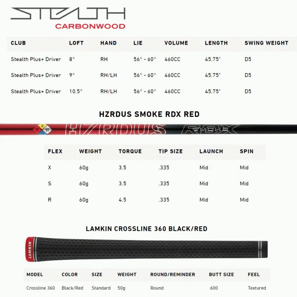 - Stock Shafts: Project X HZRDUS Smoke Red RDX 60 (Mid-Launch, Mid-Spin)